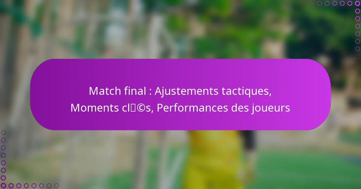 Match final : Ajustements tactiques, Moments clés, Performances des joueurs