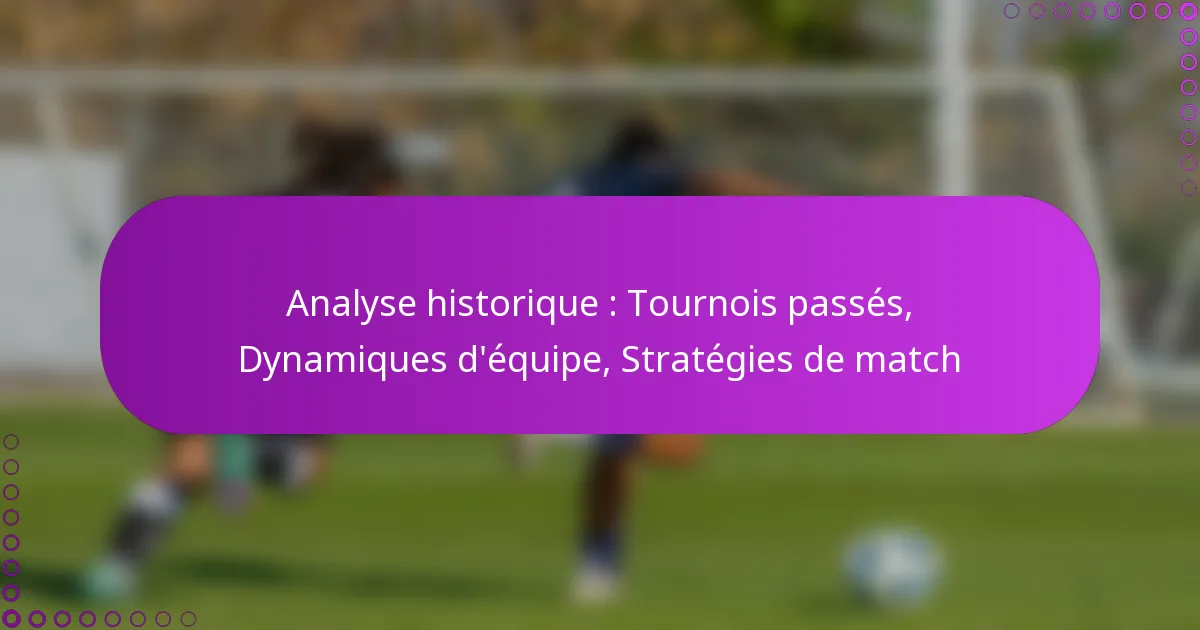 L’analyse historique des tournois passés révèle l’interaction complexe entre la dynamique d’équipe et les stratégies de match, illustrant comment ces éléments ont évolué au fil du temps. En examinant les jalons clés du sport, nous pouvons obtenir des aperçus sur le développement de la compétition et les approches tactiques qui ont façonné les résultats d’événements significatifs. Comprendre ces facteurs enrichit non seulement notre appréciation du sport, mais informe également les stratégies futures et les formations d’équipe.