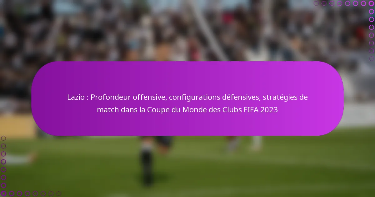 La performance de la Lazio lors de la Coupe du Monde des Clubs de la FIFA 2023 est influencée par plusieurs facteurs critiques, notamment leur profondeur offensive, leurs configurations défensives et leurs stratégies de match. Les contributions clés des joueurs, les formations tactiques et l’impact des blessures jouent également des rôles significatifs dans la détermination de leur succès sur le terrain.