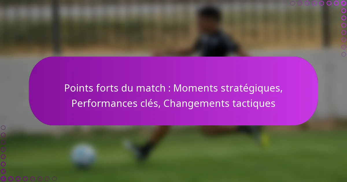 Points forts du match : Moments stratégiques, Performances clés, Changements tactiques