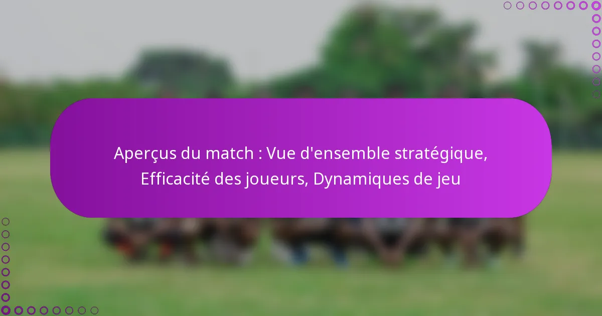 Aperçus du match : Vue d’ensemble stratégique, Efficacité des joueurs, Dynamiques de jeu