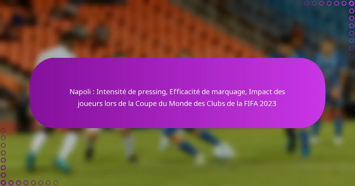 Les joueurs individuels ont significativement influencé la performance de Naples lors de la Coupe du Monde des Clubs de la FIFA 2023, mettant en avant leur intensité de pressing et leur efficacité de marquage. Les contributions clés de joueurs remarquables ont non seulement amélioré la stratégie de l’équipe, mais ont également mis en lumière les talents émergents au sein de l’équipe.