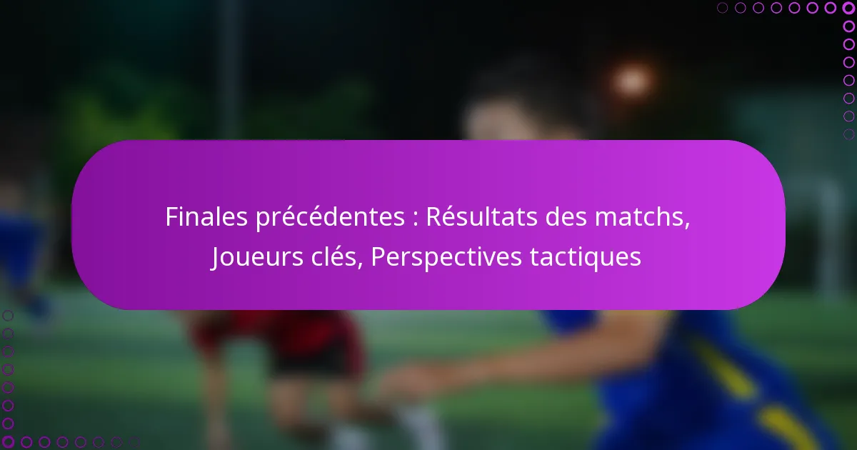 Finales précédentes : Résultats des matchs, Joueurs clés, Perspectives tactiques