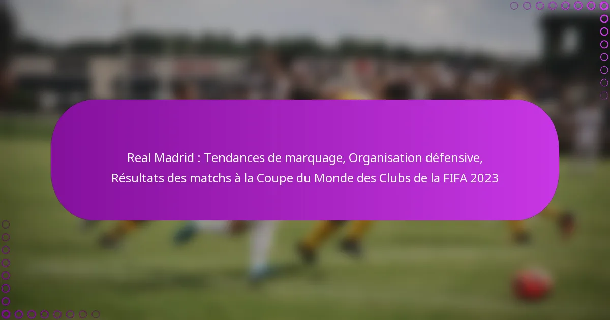 - Real Madrid : Tendances de marquage, Organisation défensive, Résultats des matchs à la Coupe du Monde des Clubs de la FIFA 2023