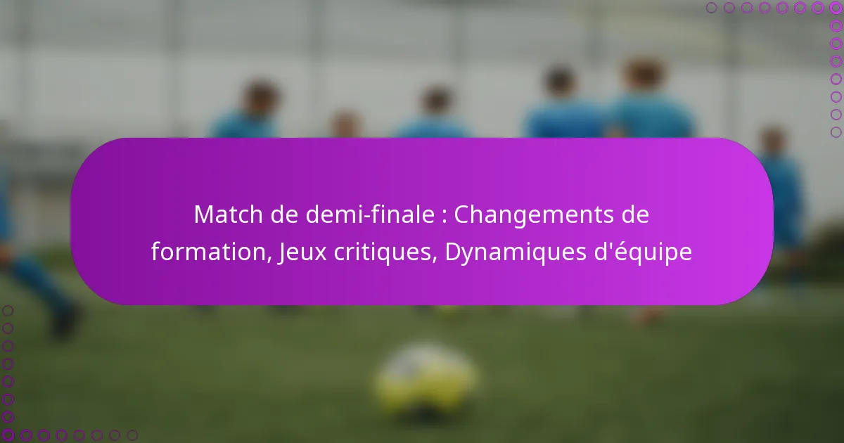 Match de demi-finale : Changements de formation, Jeux critiques, Dynamiques d’équipe