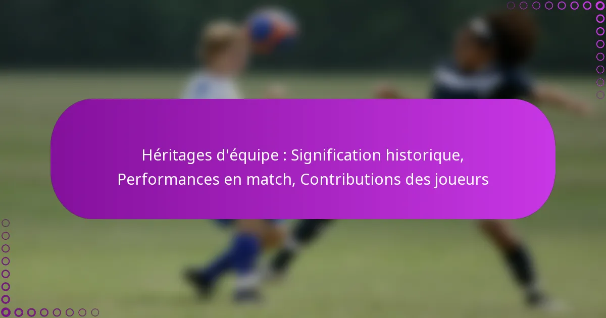 Héritages d’équipe : Signification historique, Performances en match, Contributions des joueurs
